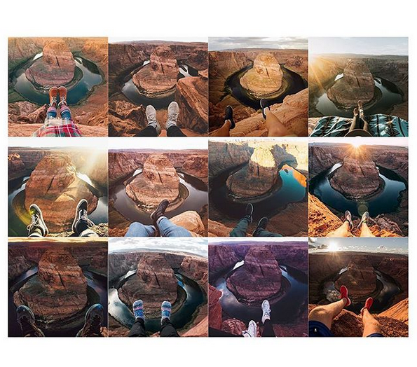 La cuenta se llama @insta_repeat y en Instagram nos propone reflexionar sobre esta pregunta ¿Cómo lo hace? Une diferentes fotografías tomadas en los mismos sitios turísticos ¿El resultado? ¡Sí, por lo general las fotos se repiten y se repiten!